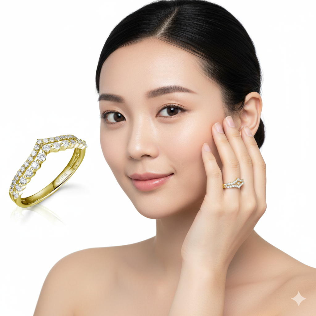 14KYG DIAMOND V SHAPE DOUBLE  RING